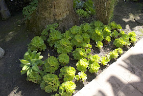 I'm assuming everyone has a nostalgic flower that reminds them of their childhood and hollyhocks are mine. I've probably mentioned before (writing a blog on one subject for seven years it is hard not to repeat yourself) that when I was in kindergarten we lived at a lake in Michigan and hollyhocks grew wild there. We used to pull them apart and make hollyhock dolls out of them. Today when I see them growing all over SJC in the Mission and Old Town, I want to plant some because they grow so easily from seed, but I usually forget until it is too late. This year I actually bought a couple flats of three inch pots that I spotted in a nursery in the spring when I was there for something else. I brought them home and had my helper plant them. I put a flat of white ones in the Moonlight Garden and a flat of violet ones in the perennial garden. The ones in the Moonlight Garden have disappeared. I'm sure they are very tasty to hungry rabbits now that I think about it. A few of the ones in the perennial garden have survived and are blooming, but they are white! I probably should have been more specific about making sure they were planted along a fence or wall out of the way of dogs wandering through the beds sniffing down, well, whatever. And those that have survived are, of course, besieged with rust and mildew, the nemesis of the hollyhock. Some hollyhocks are annuals, some are biannuals and some are listed as perennials, and as we all know, that means little in Southern California where plants just do whatever they want as far as coming and going ( I still have pansies blooming from last fall) so I will try again. This time from seeds, in an out-of-the-way bed along a wall, away from where the bunnies roam. Doesn't it drive you crazy when you see plants growing in ditches that you can't get to grow in your own back yard?