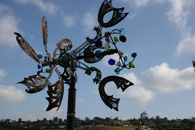 right behind a wind sculpture by
